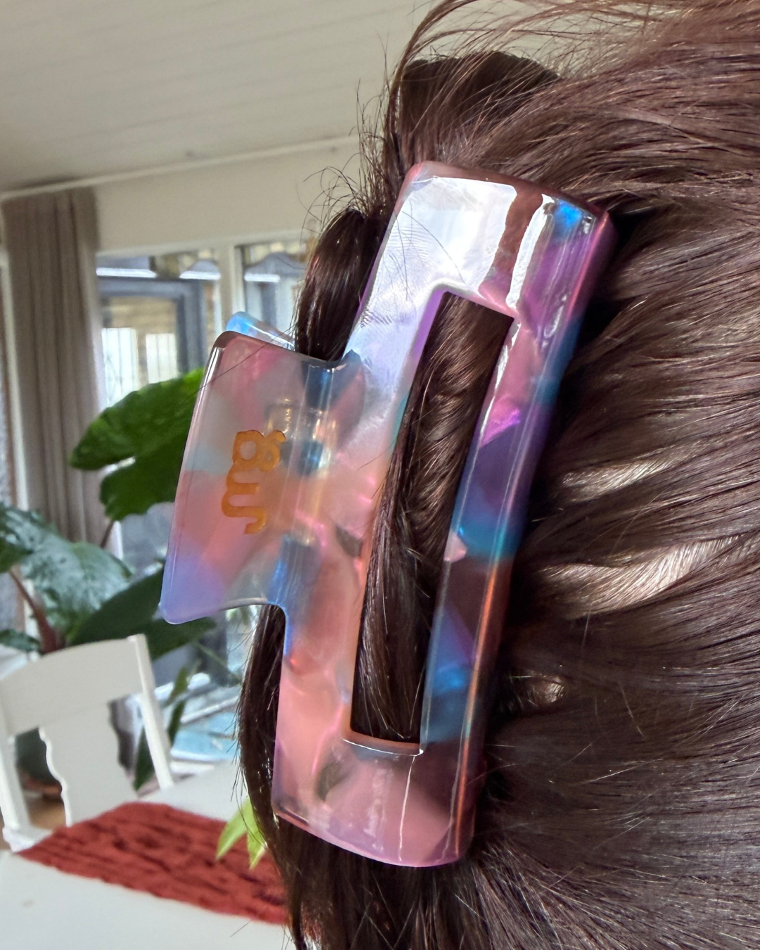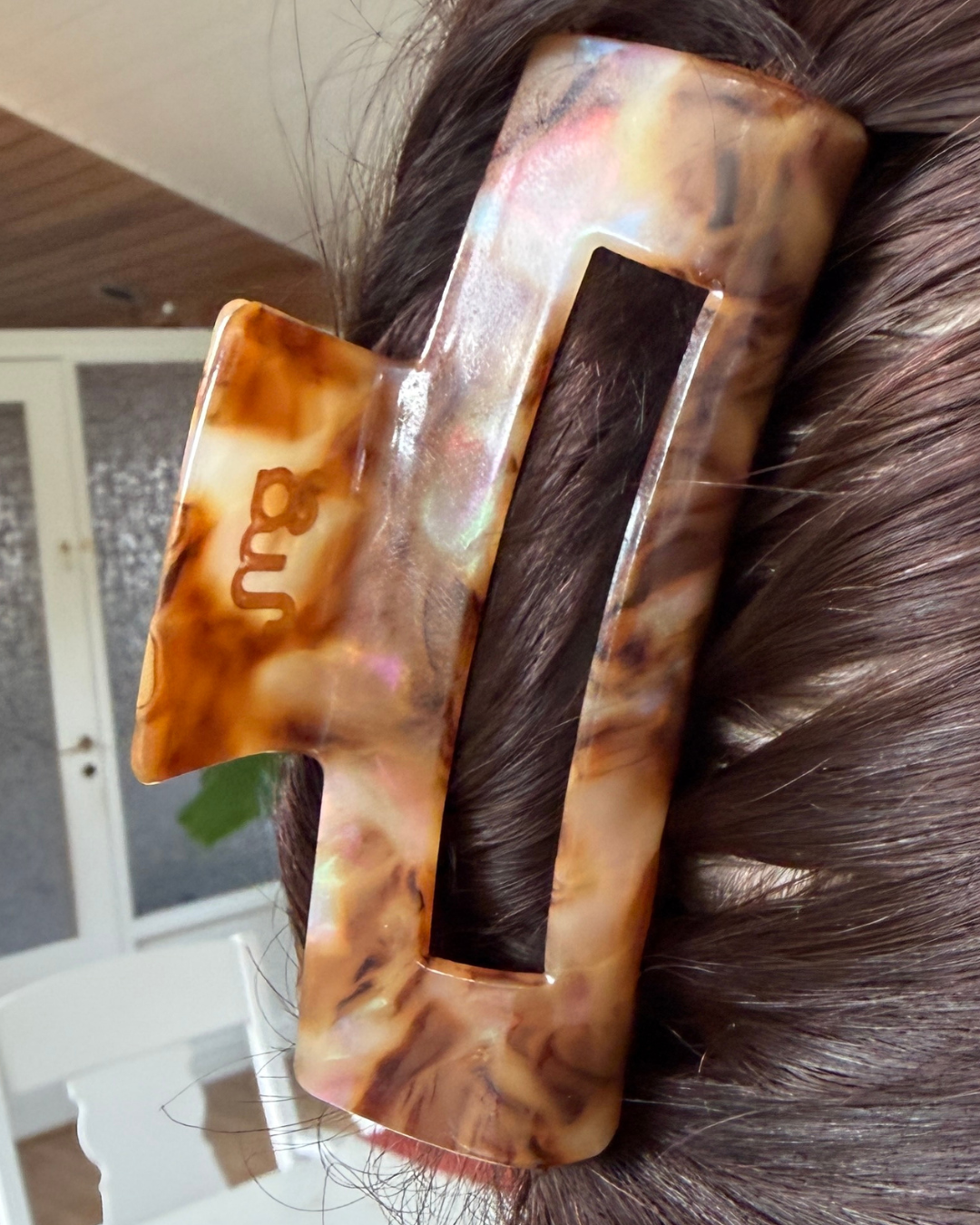 Elegant hårklämma tillverkad i acetat, ett hållbart material med vacker glans och mjukt grepp om håret. Den är 10,5 cm och jag klassar det som en medelstor klämma. Finns i fem melerade färger som ger en unik, lyxig känsla.