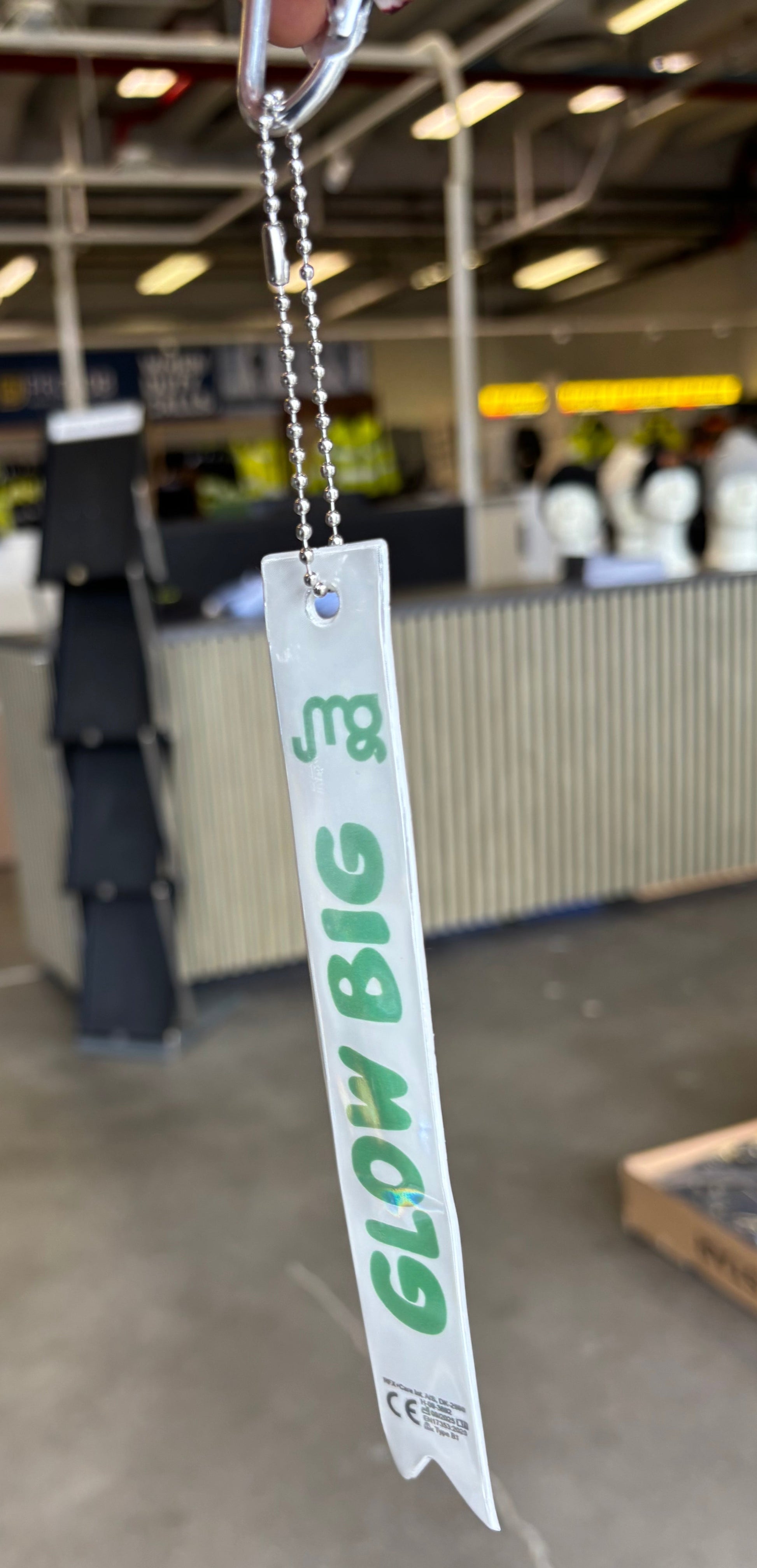Skydda dig i mörkret med en reflex i fin Glow big or Glow home anda. Med grön text!