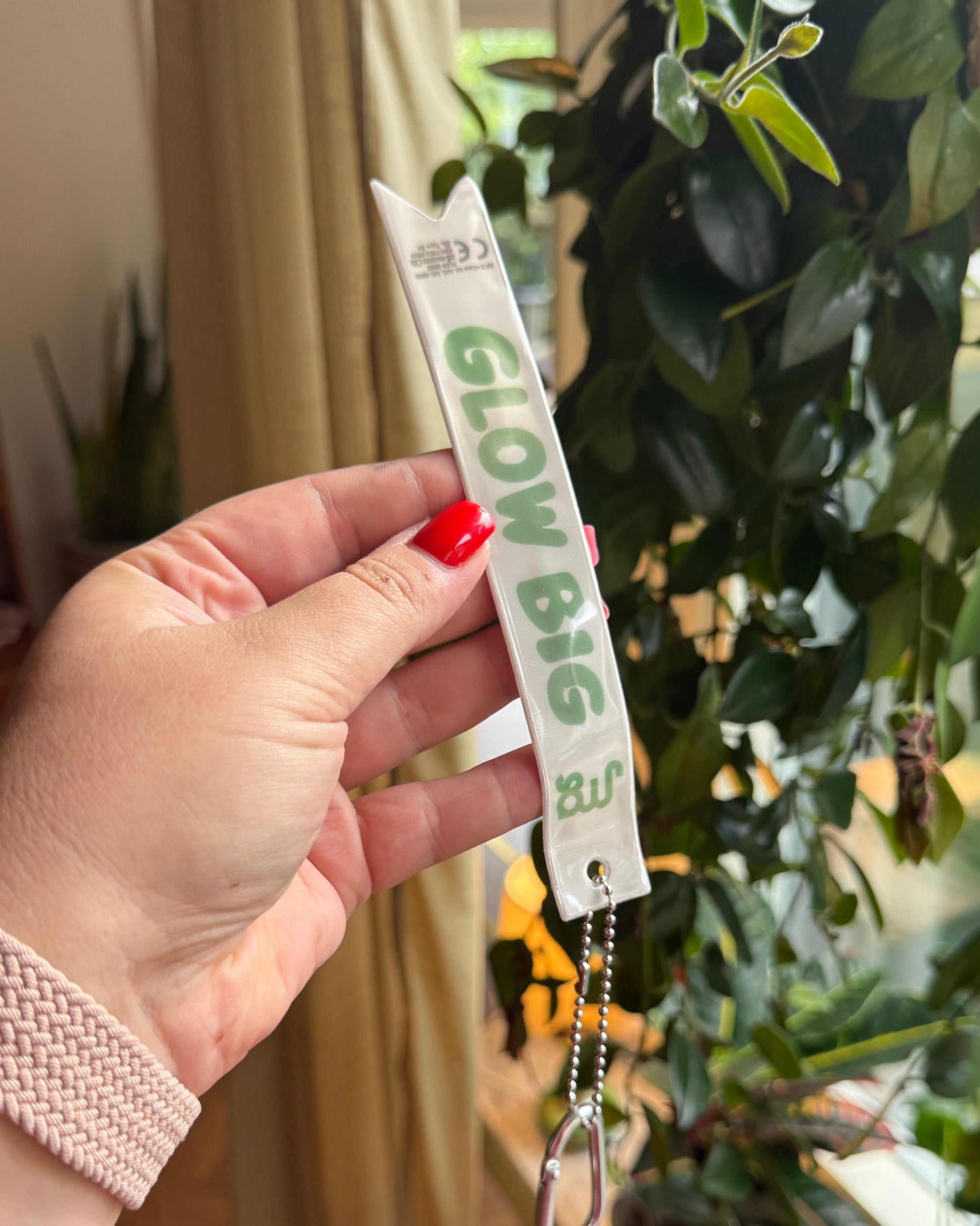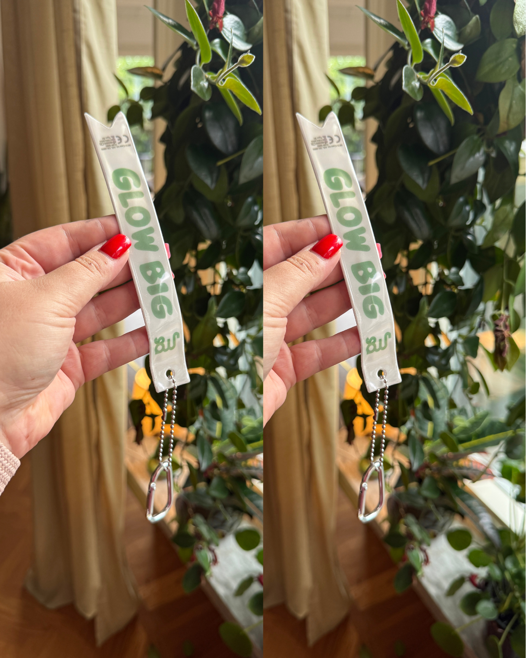 Skydda dig i mörkret med en reflex i fin Glow big or Glow home anda. Med grön text!