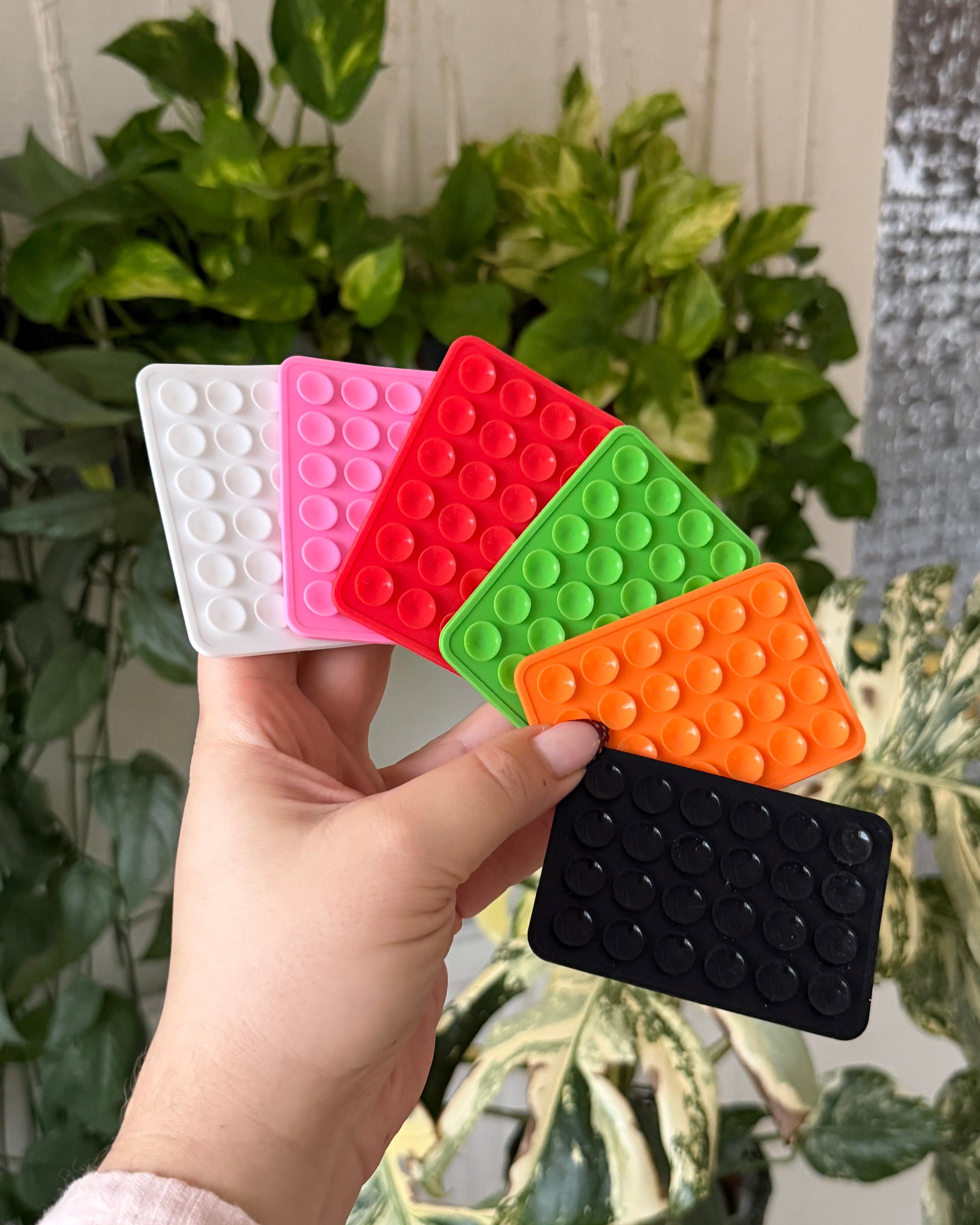 Sugproppshållare till mobil med klister, funkar på alla telefoner. Finns i grön, rosa, orange och vit. Självhäftande, du tar bort lappen för klistret och trycker på ditt skal. PROTIPS: ha inte ett texturerat skal, det sitter inte bra då.